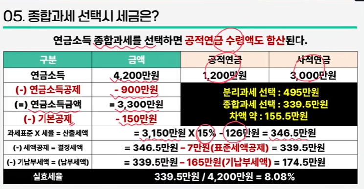 연 4200만원 연금소득 (공적연금 월 100만원 수령, 사적연금 월 250만원 수령 시) 시