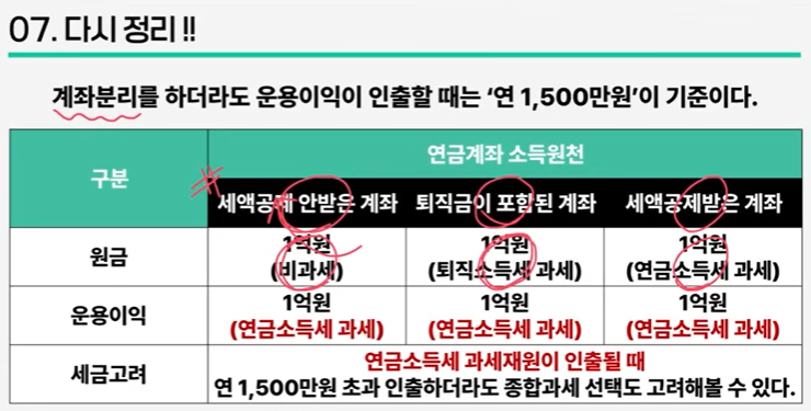 다만, 공적연금과 사적연금 증액 수령 시 분리과세가 유리할 수도 있어 유의.