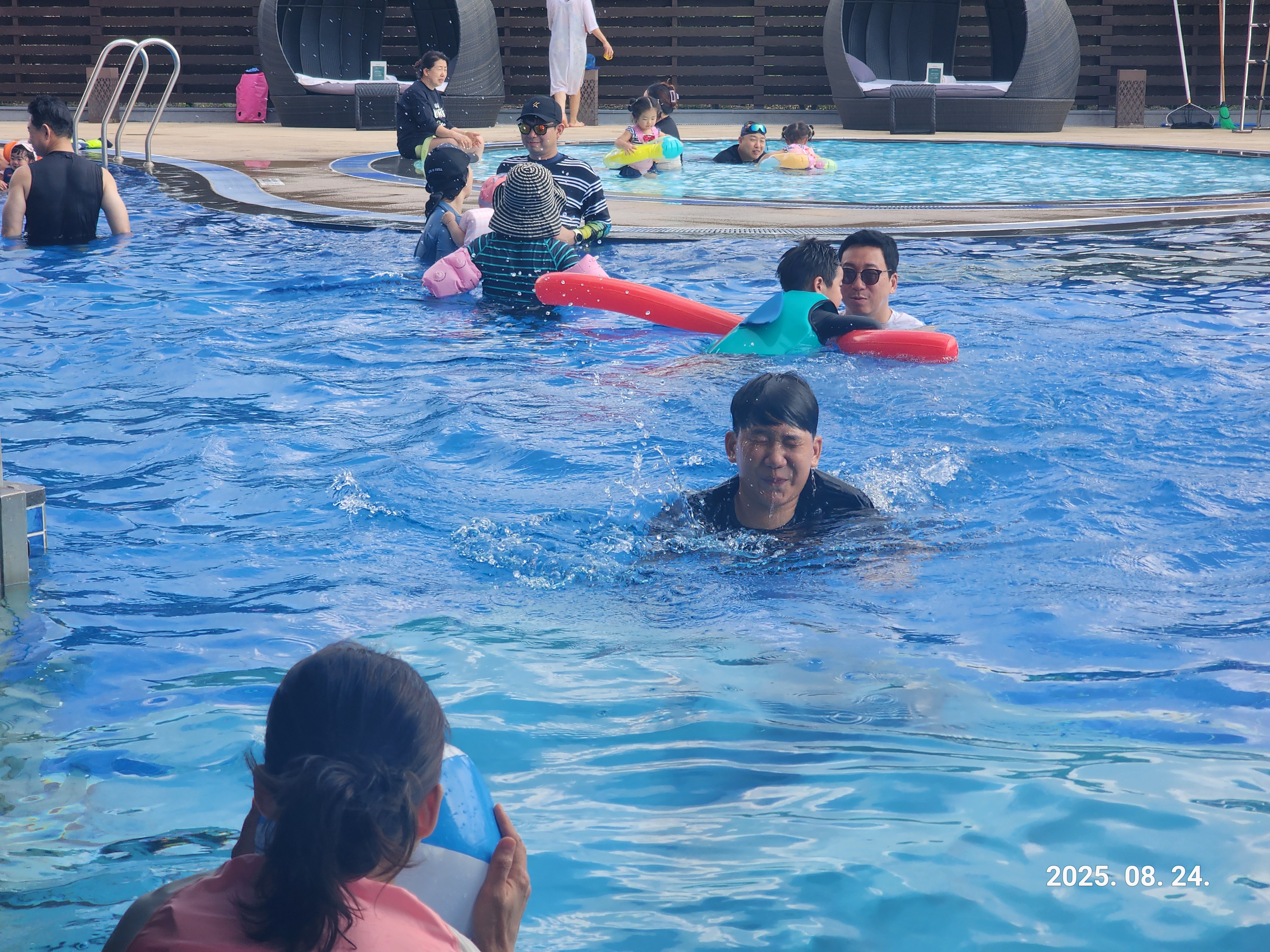 워터 풀장에서 물놀이를 하며 가족 모두가 아이처럼 웃었다.