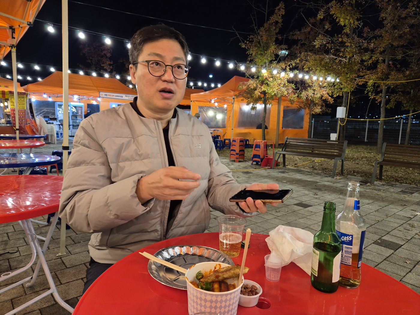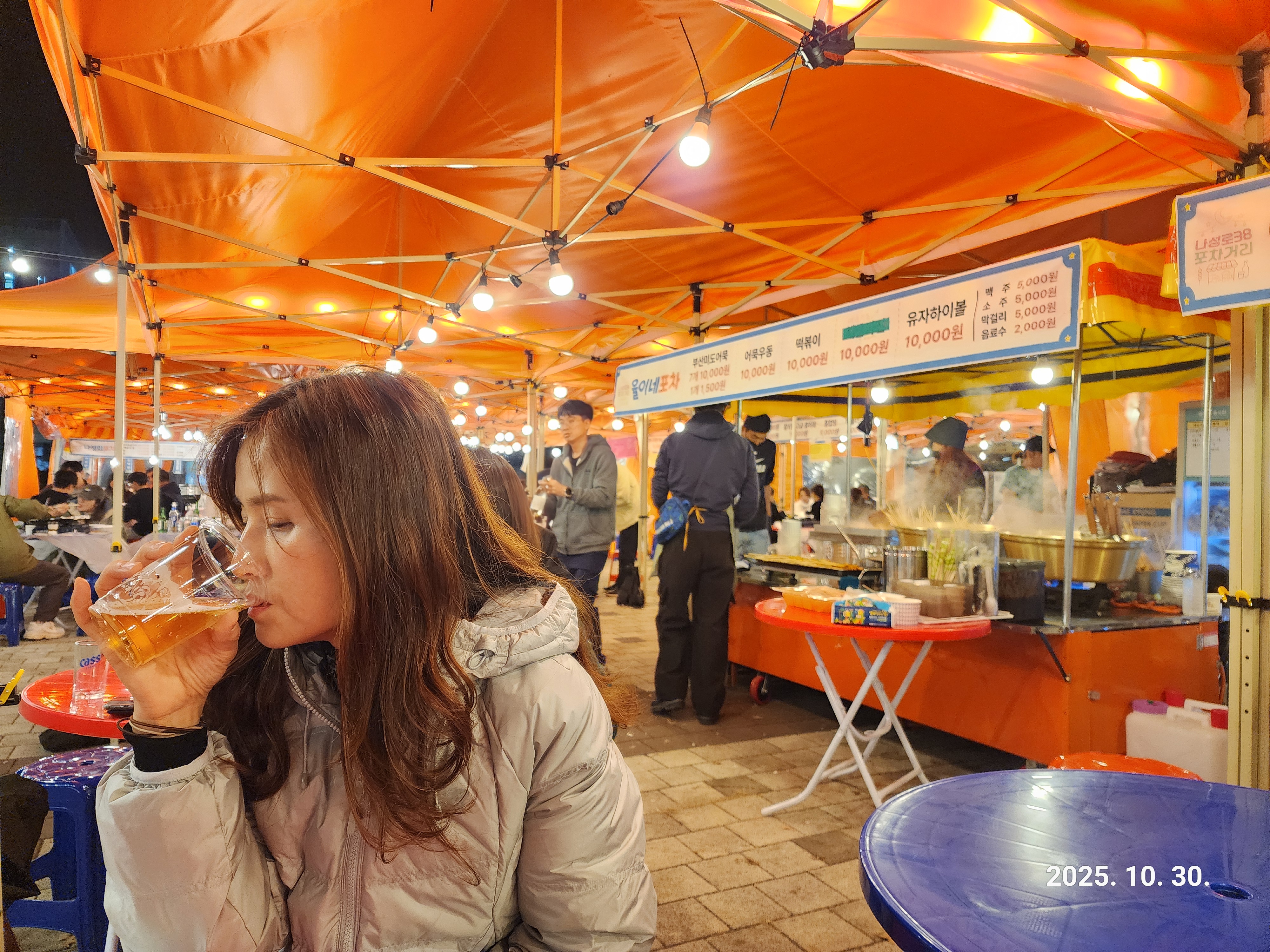 우리 둘은 추워 추워 하는데. 젊은 남녀 4명이 재잘 재잘 떠드는 소리에 술 맛이 더해진다.
