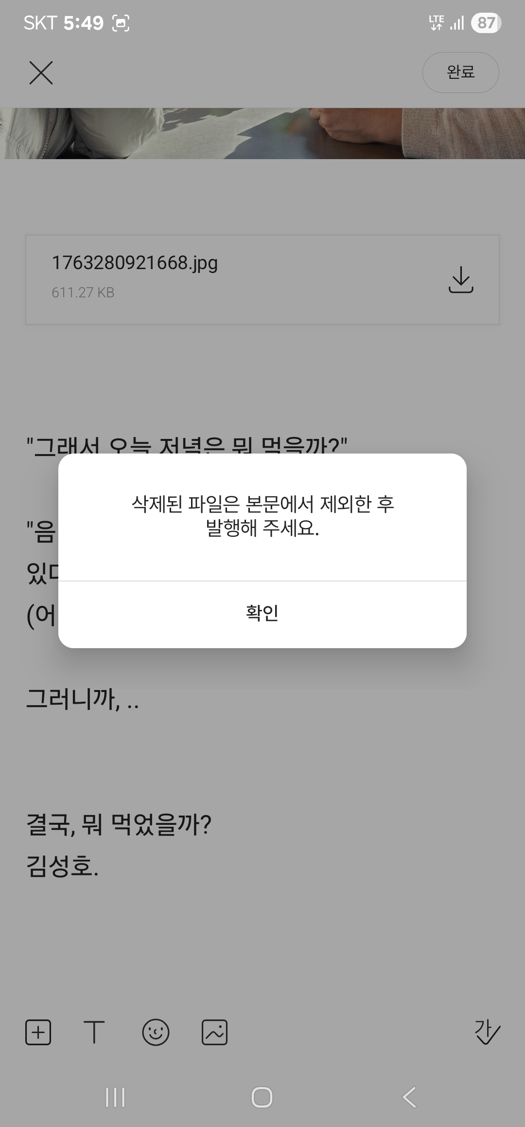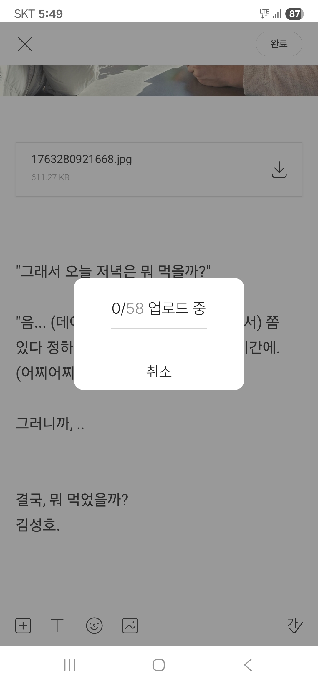 두세번 해도 업로드되지 않는다.