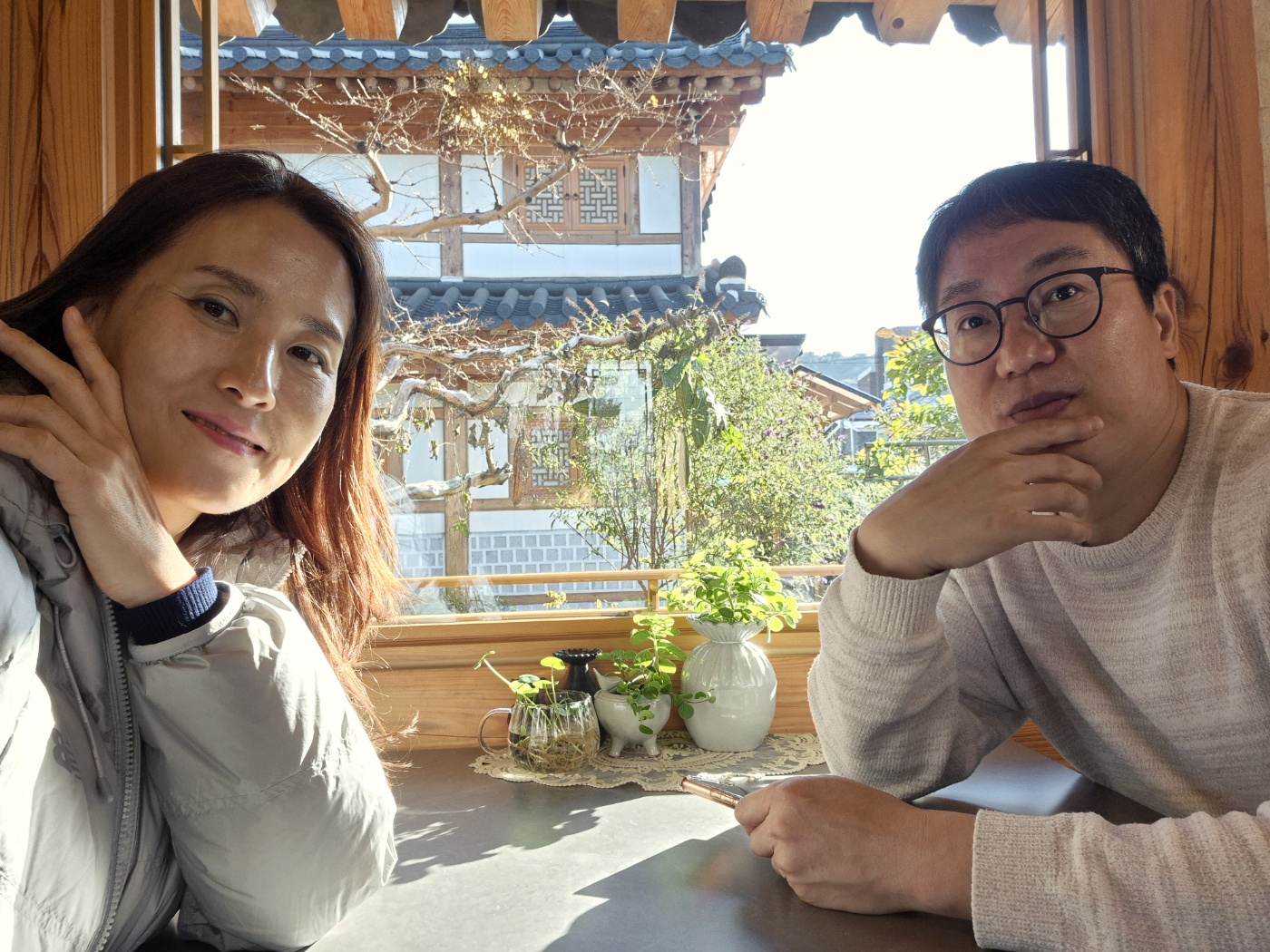 무척 손을 많이 댄, 정성이 과하게 긷든, 투자를 아끼지 않은, 디테일하게 터치한, 그런데 주차는 6대 정도, 작은 규모의 실내, 들어선 순간 마주한 노인 두 분, 공들여 가꾼 정원 뜰...