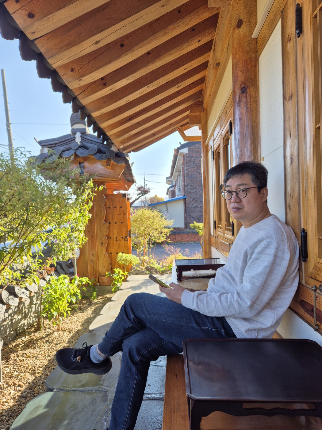 때맞춰 도착했다. 문닫은 주유소, 한옥 다리, 정자방길... 둘러보고 돌아오자마자.