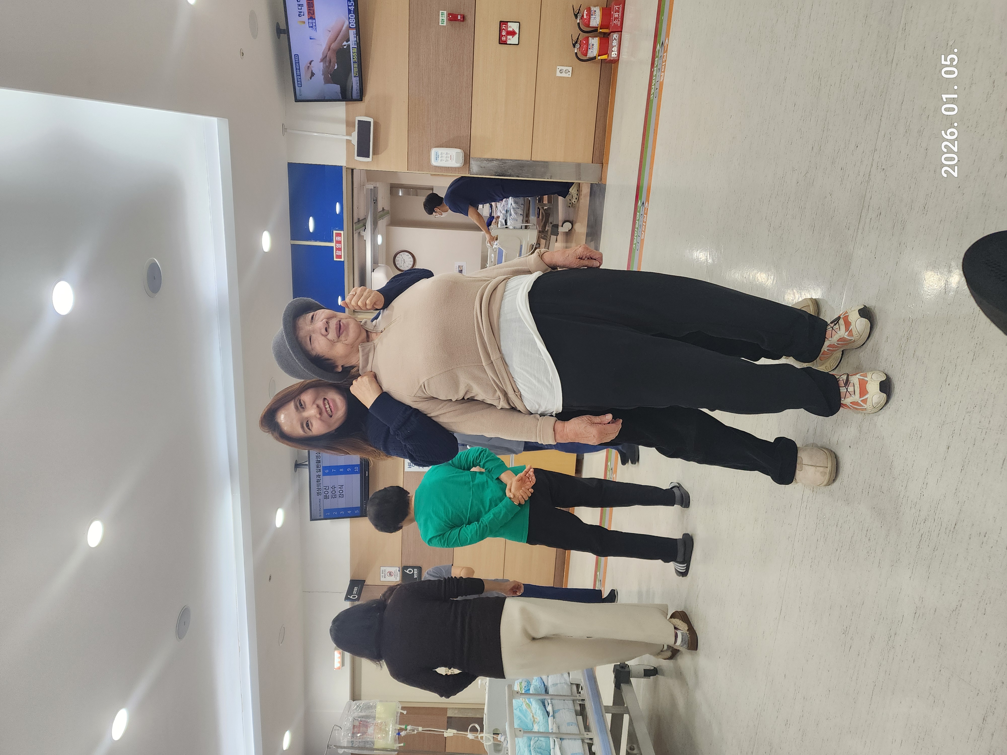 "어머니, 허리 똑 바로 피세요."