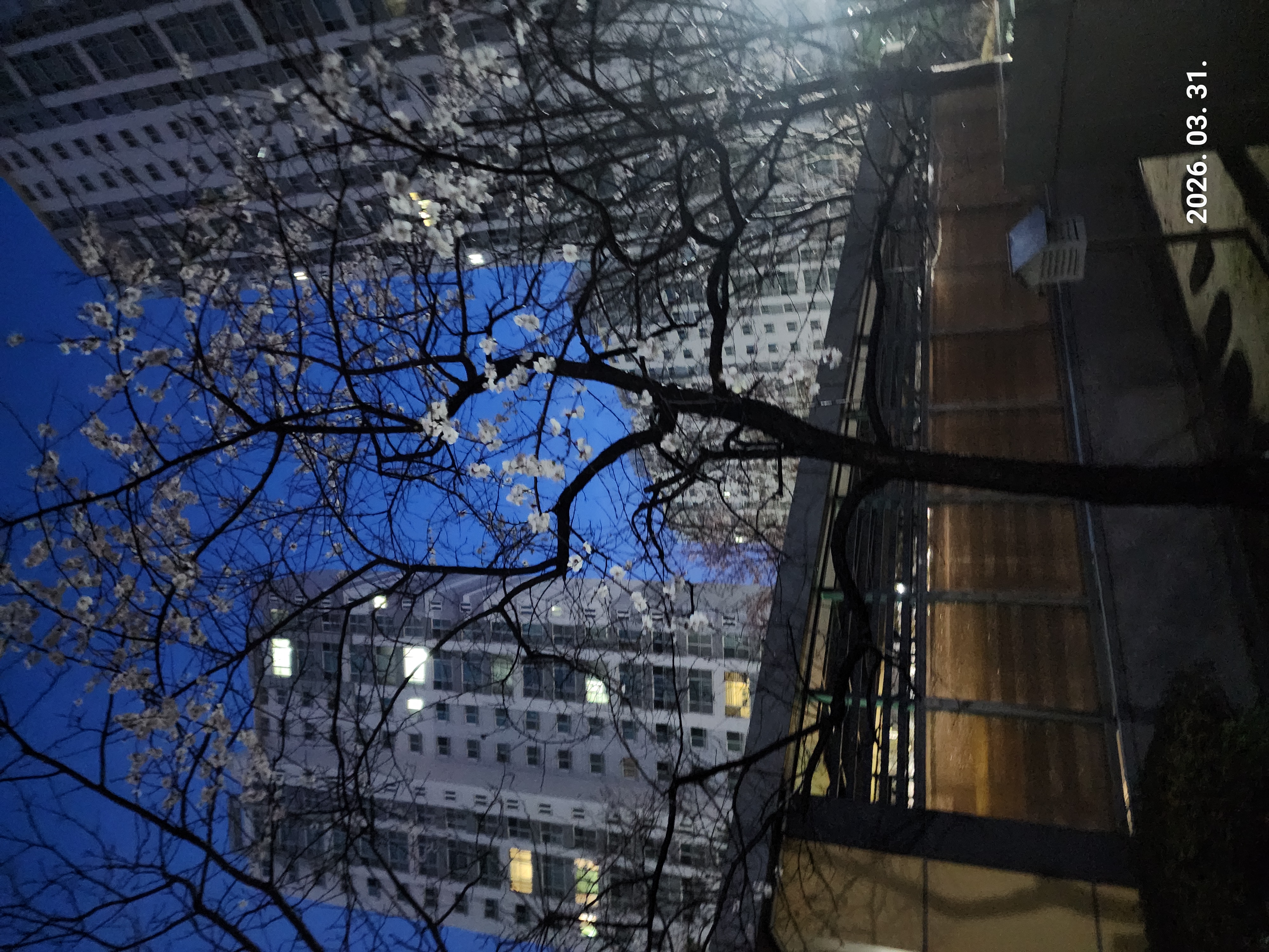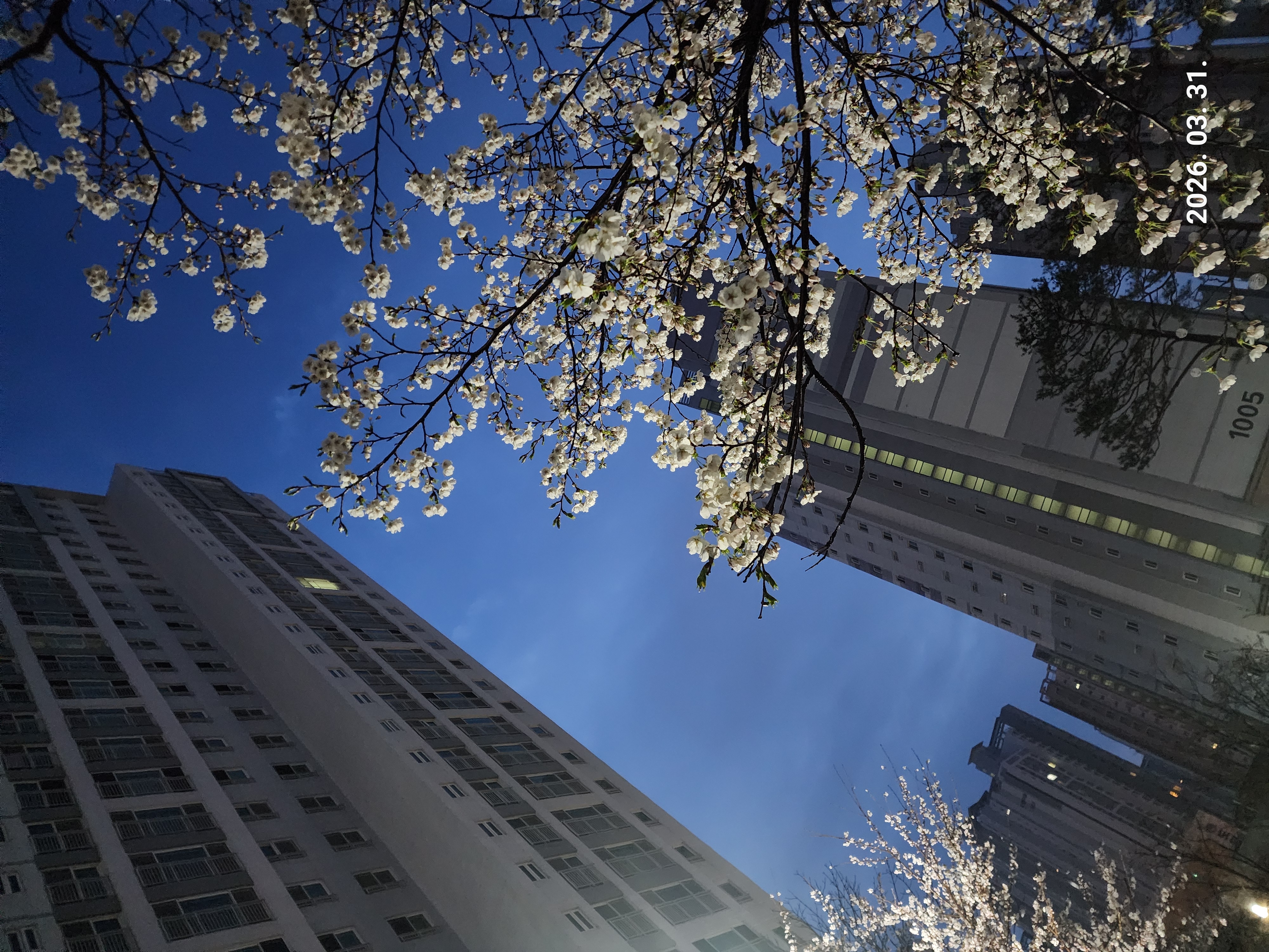 우주의 지향이 어쩌면 머뭄 자체가 아니겠는가 하는 생각이 듦에 따라 한가득 벚꽃 나무의 가지를 담아냈다.